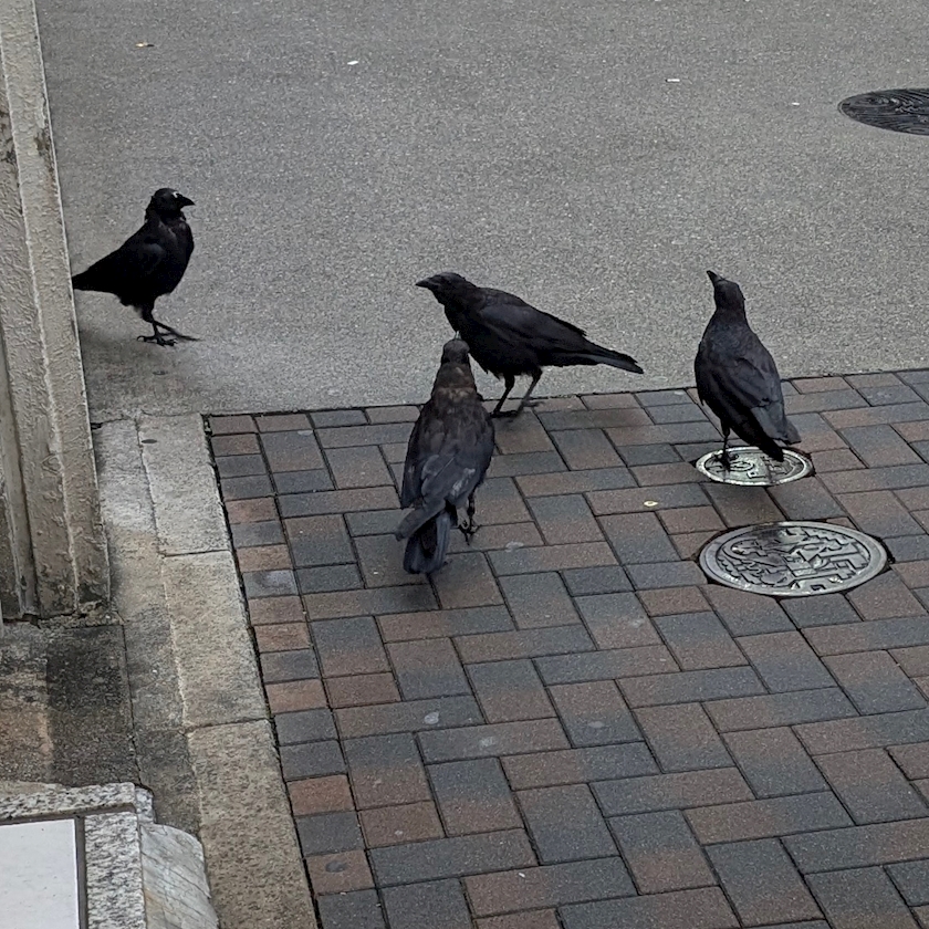 お店出たら🐦⬛群がってたので
