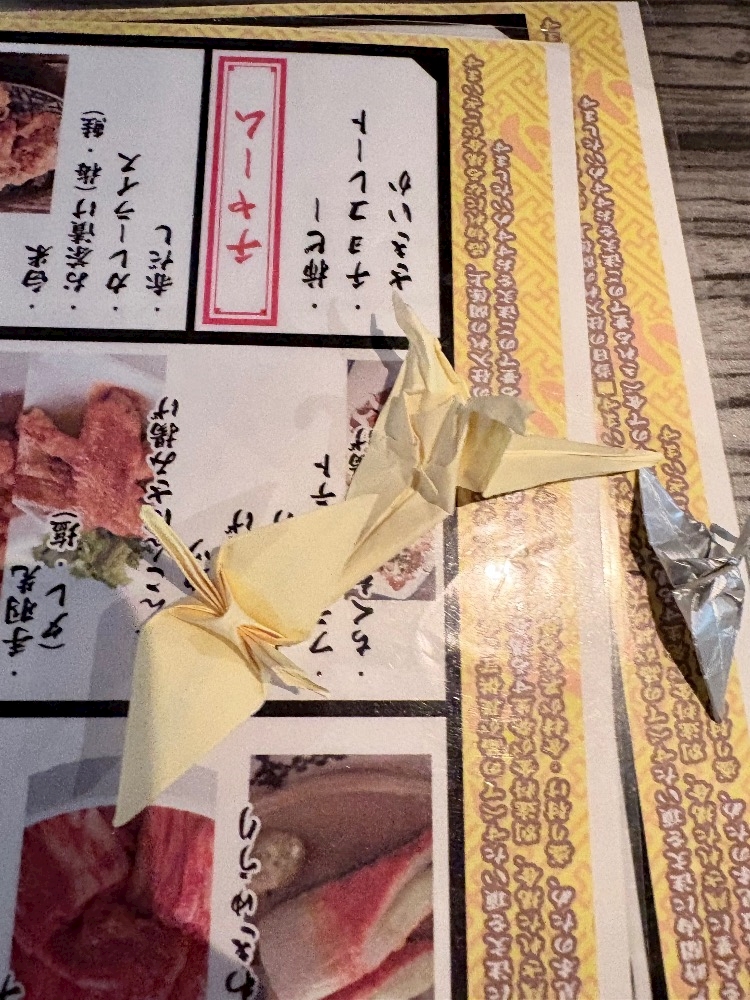 この間お店で頑張って折った鶴、、