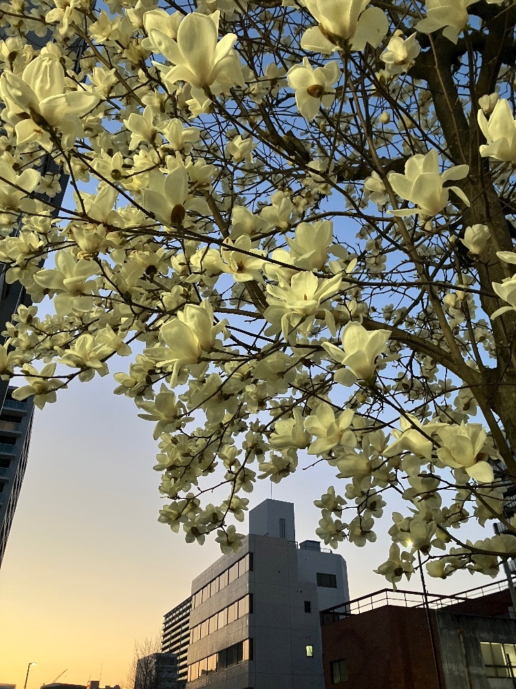 この前見た夕焼けに照らされたモクレンが綺麗でうっとり🥹💞