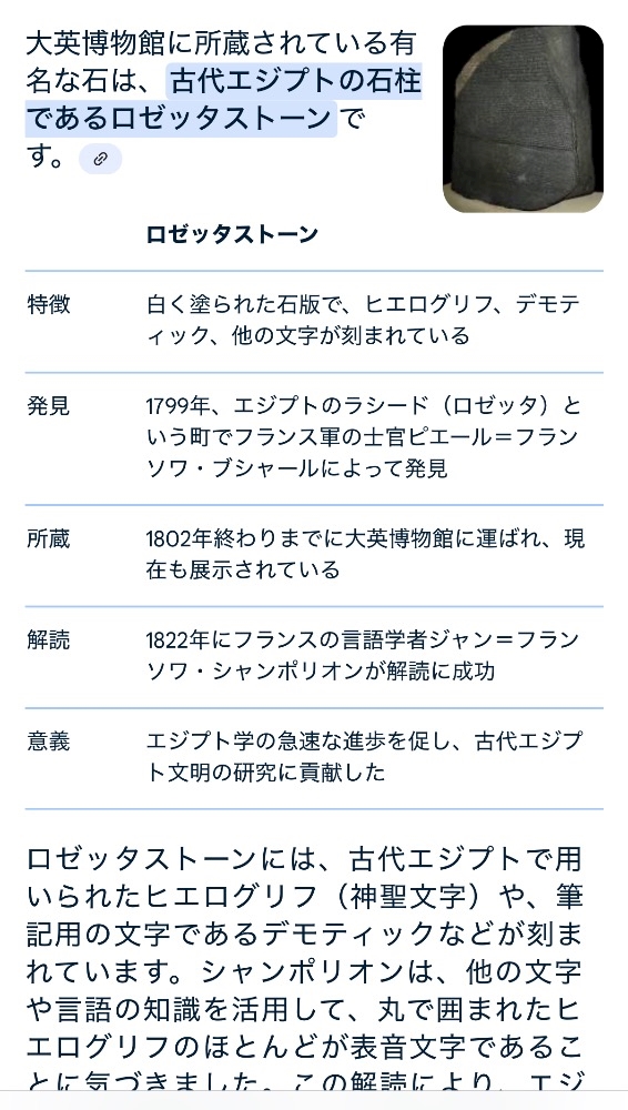 大有名なロゼッタストーンね
