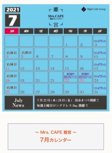 7月♡ - ♡樹木希 凛♡ - Mrs.CAFE~離宮~・ミセスカフェ リキュウ - 名古屋 錦の熟女パブ/熟女キャバクラ