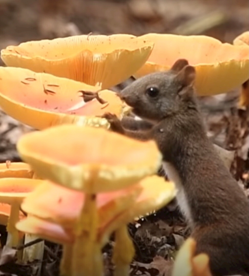 リスさんが大きなキノコを食べているのを見てふと思った。