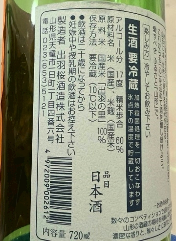 『出羽桜 しぼりたて生原酒』