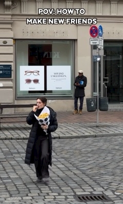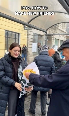 花束のように抱えた女性