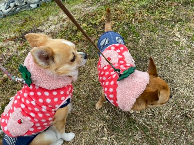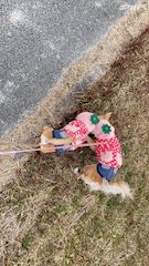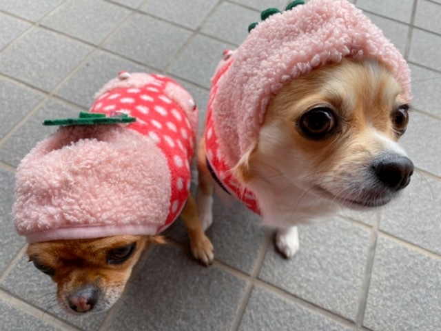可愛いいちごちゃん着てしっぽふりふりおっ散歩♥️