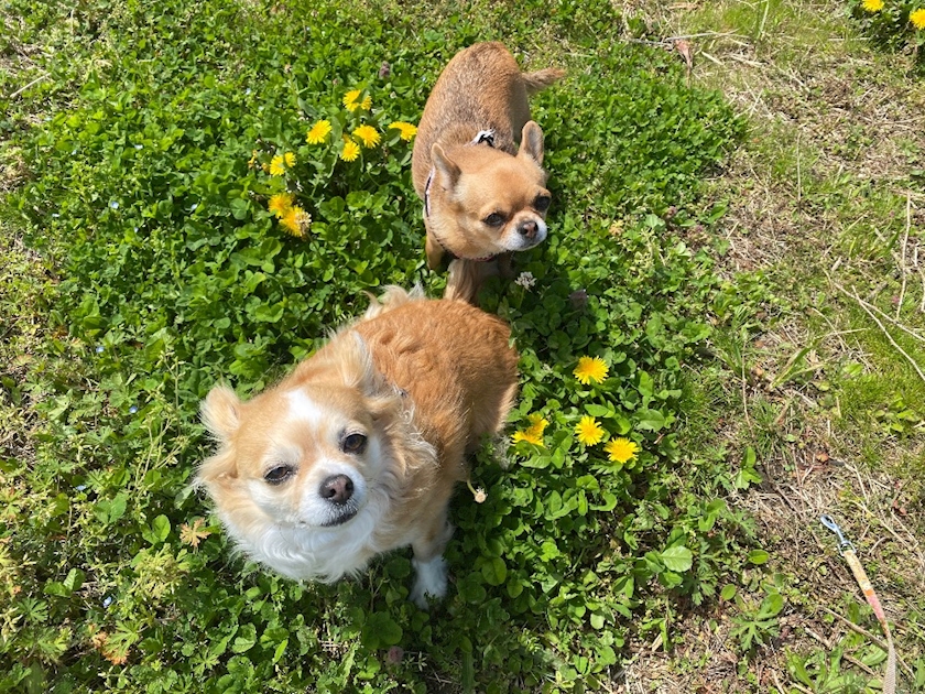 リードなしでおっ散歩🐶🐶