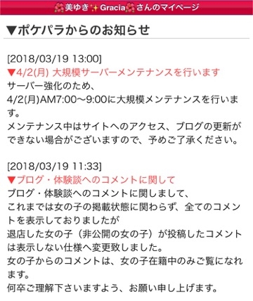 退店した女の子のコメが