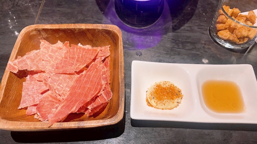 ポークジャーキーつまみながら