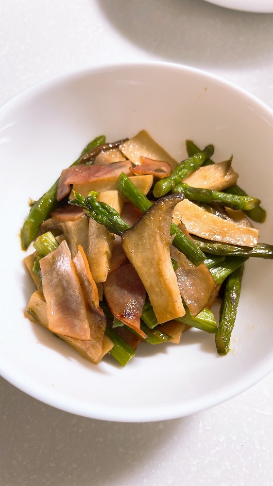 エリンギ&アスパラ&ハムのバター炒め🍄