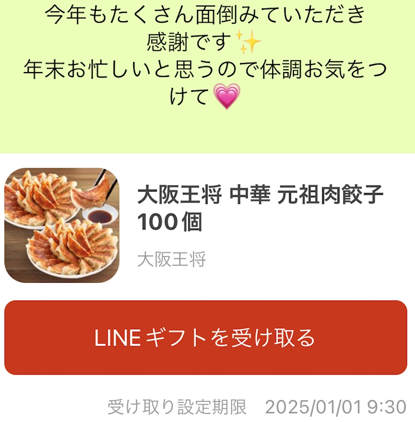 後は…かわいい女子からLINEギフトで餃子🥟もろた❣️