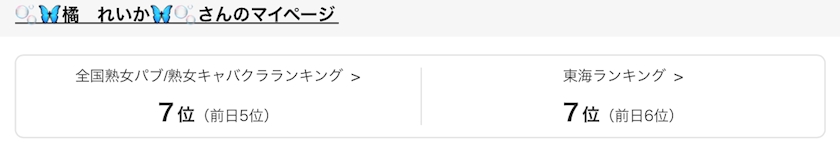今日のランキング✨ - 🫧🦋橘 れいか🦋🫧 - Mrs.CAFE~離宮~・ミセスカフェ リキュウ - 名古屋 錦の熟女パブ/熟女キャバクラ