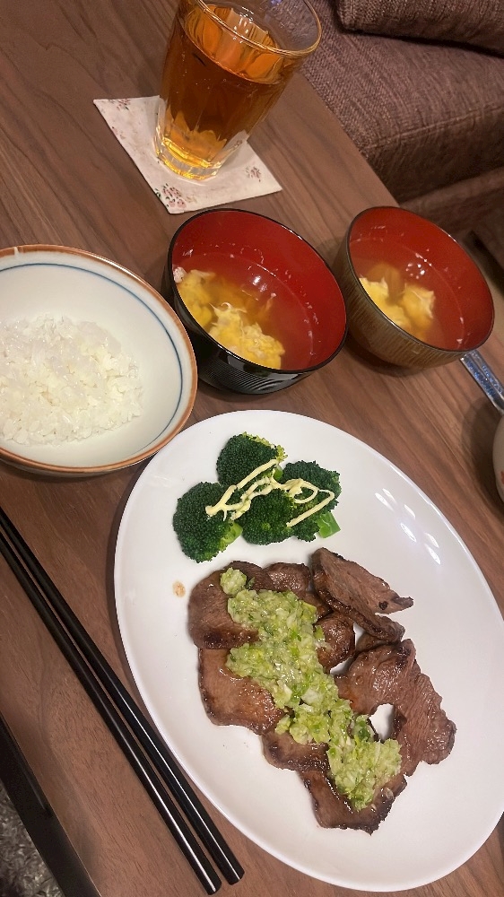 牛タンのネギ塩だれと卵スープ🥚
