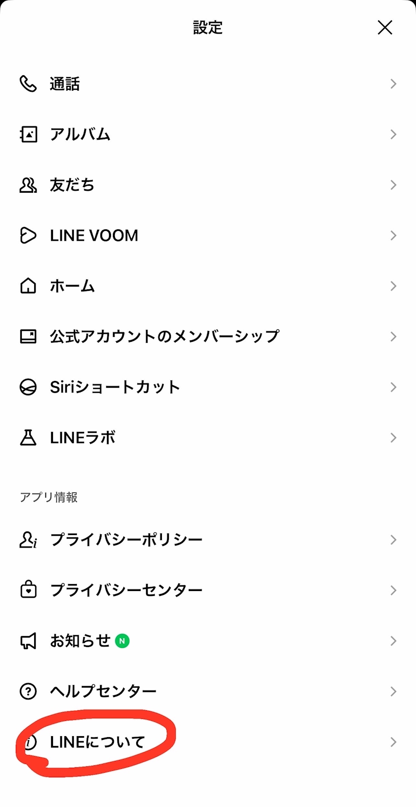 LINEについてを開き➡︎