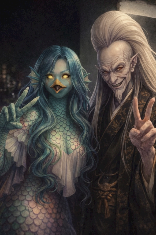 この写真をアマビエとぬらりひょんにしてもらったら…