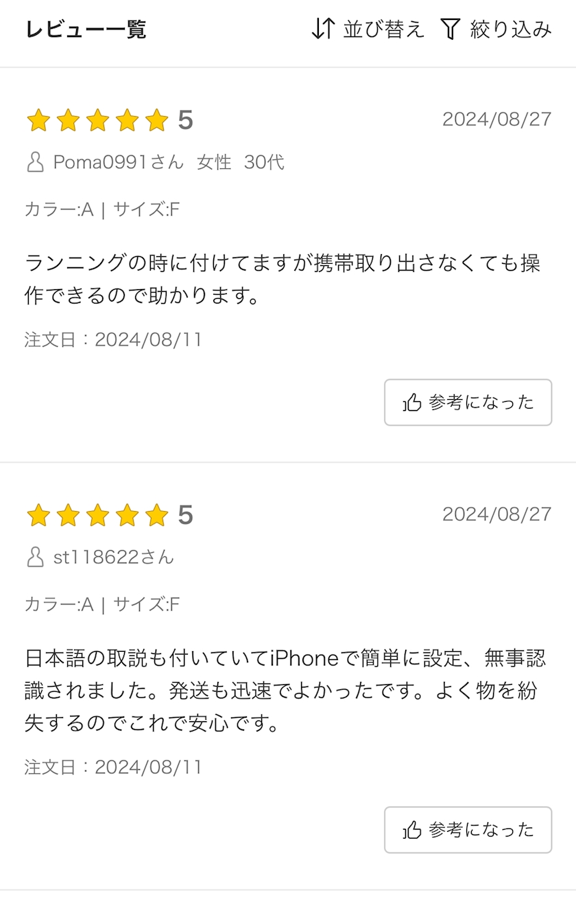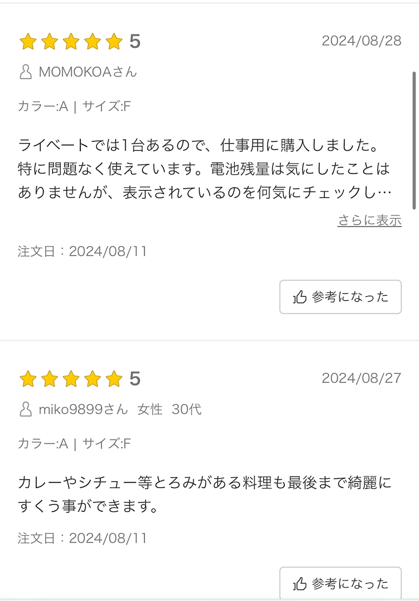 全て同じ商品についてるレビューです。