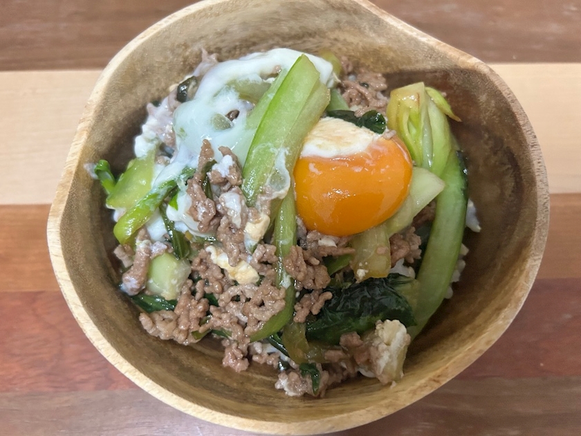 冷蔵庫に青梗菜があったからぱぱっと作って食べたやつ。