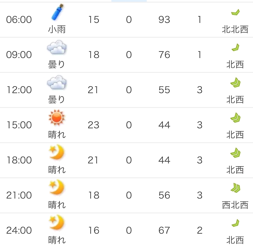 朝は雨降ってるらしい!