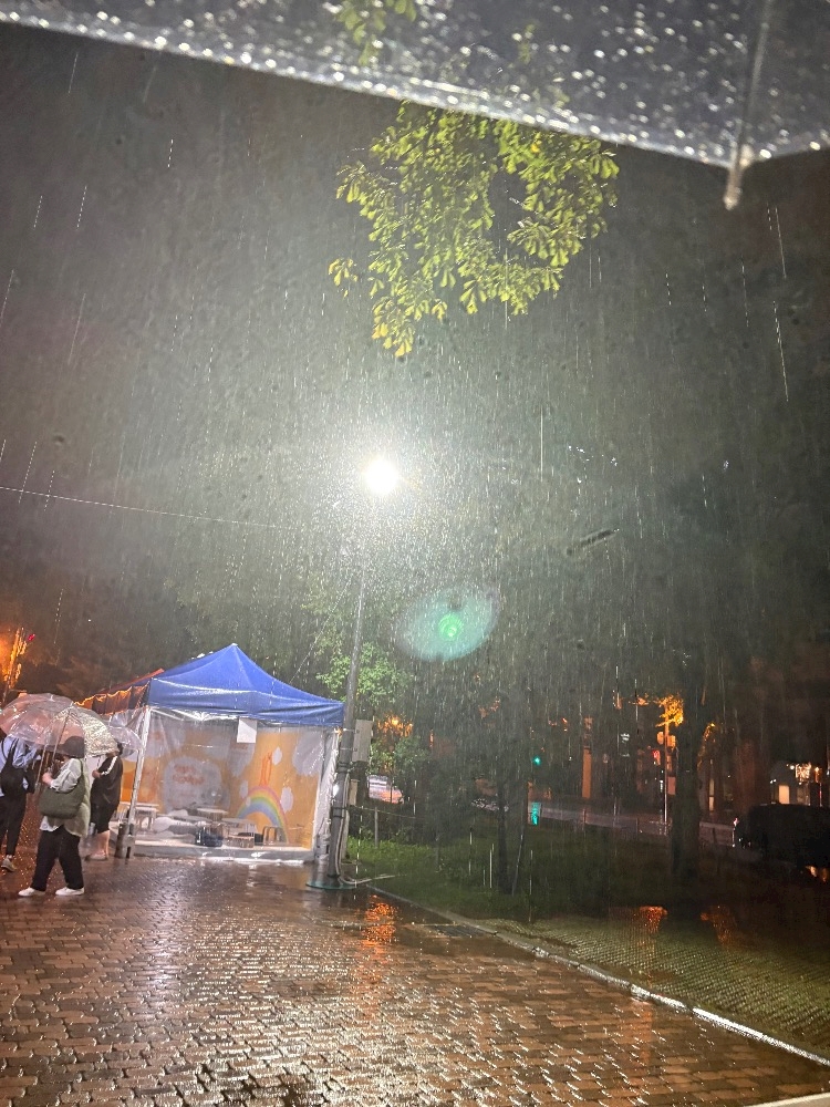 旅行先が大雨で
