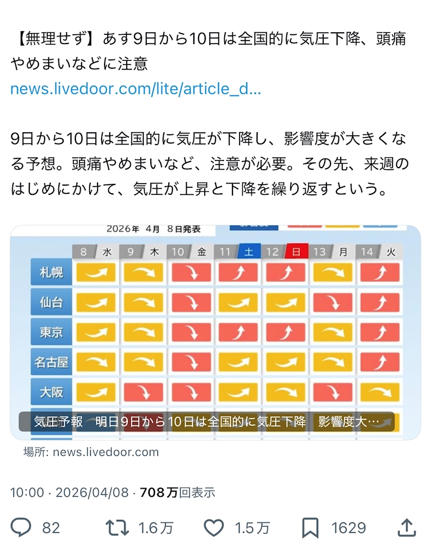 気圧やばいらしい😥