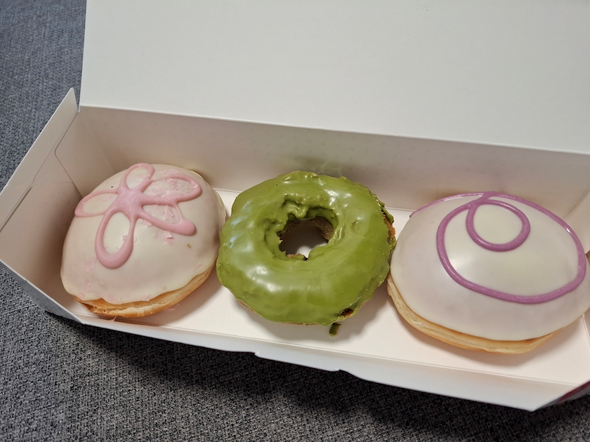 左から順番に☝️桜、抹茶、紫芋…