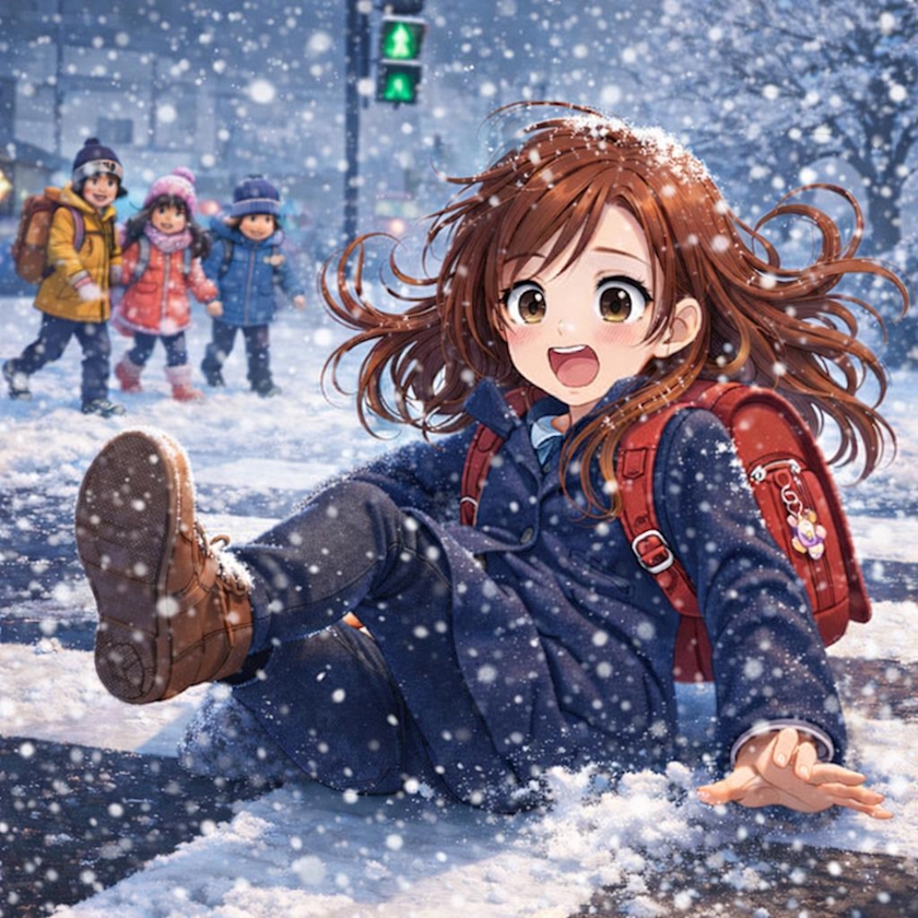 横断歩道で誰かが滑る…🧊💫