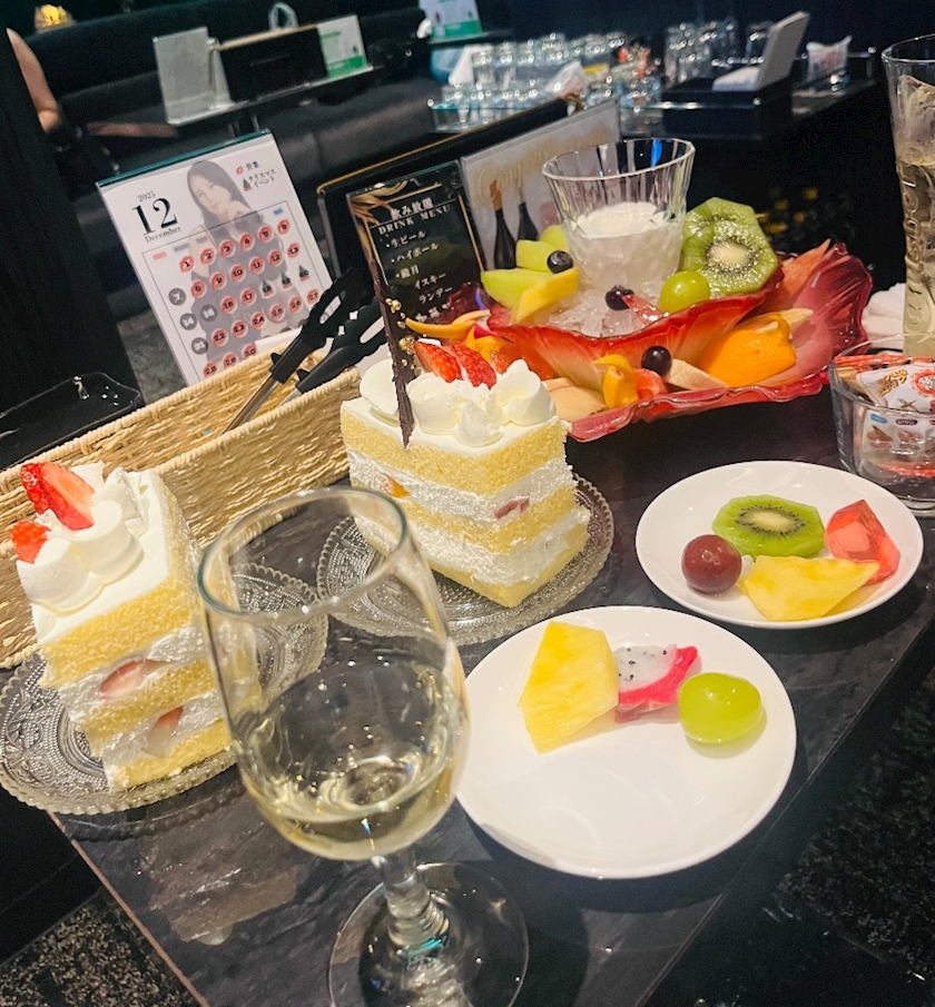 フルーツとワインにケーキ🥹