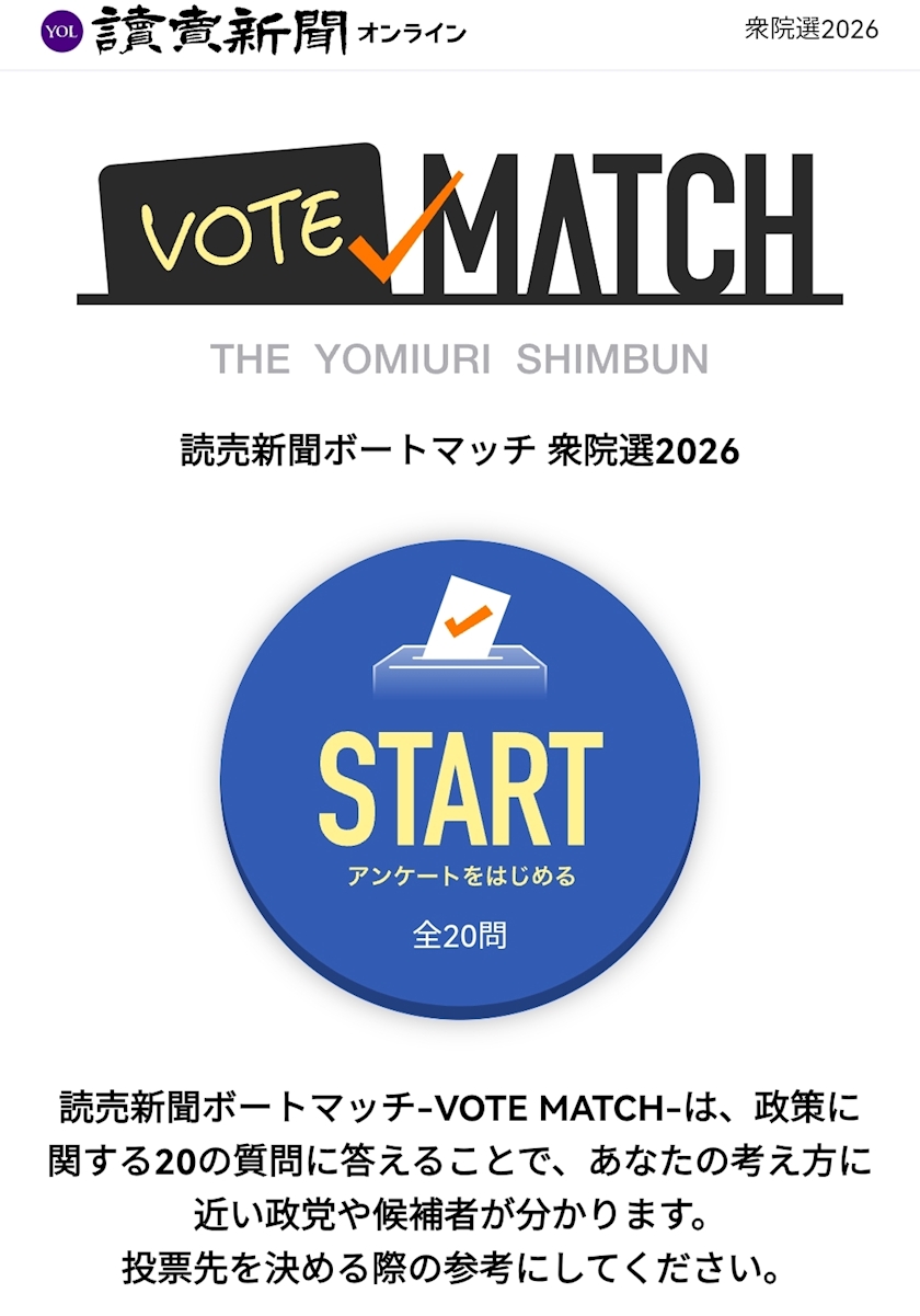 読売新聞の投票マッチングでは