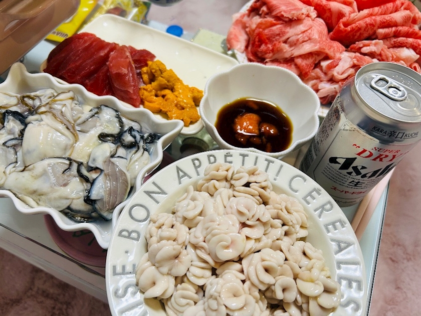 海鮮とお肉たくさん買って
