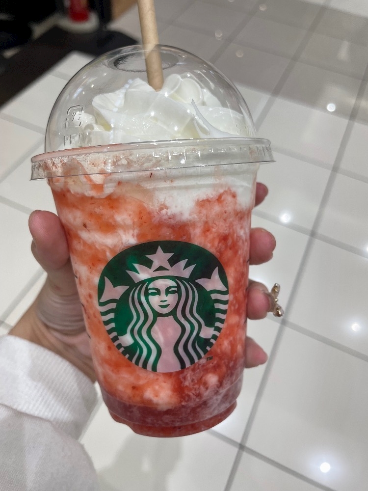 ストロベリーフラペチーノ飲めた🎶