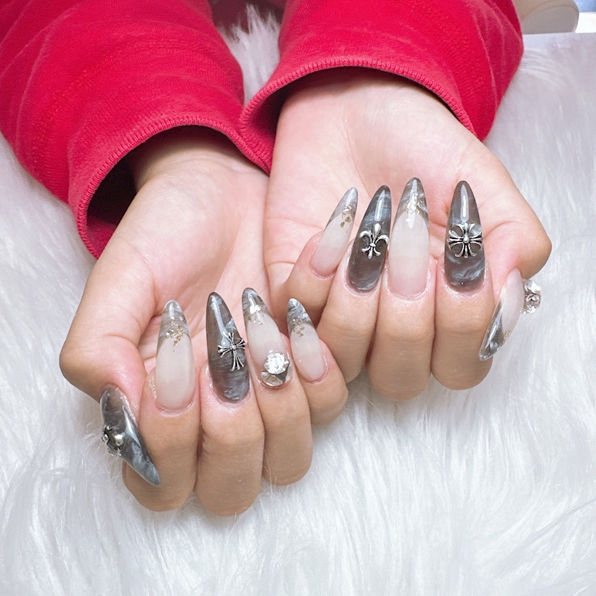 初めて黒系のネイルしてみた🥹