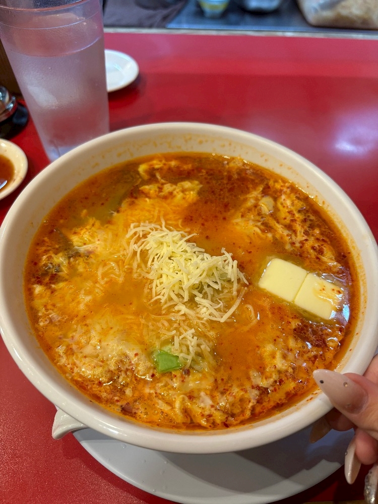 びびって小辛にして、チーズとバタートッピングしたんやけど(デブすぎかも)