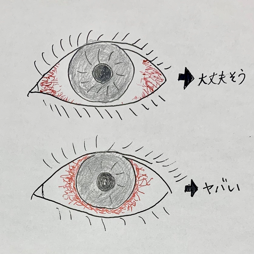 下の方は毛様充血で目の内部が炎症起こしてるらしく