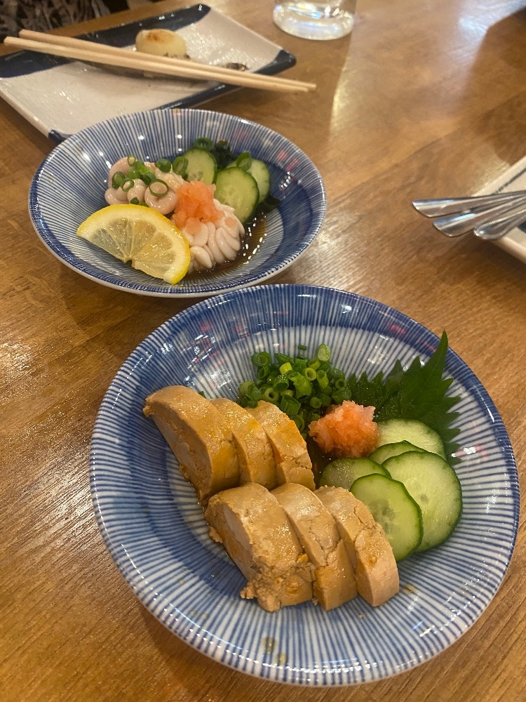 ちゃんと白子ポン酢と白子の天ぷらとあん肝食べた( ˶ ᷇ 𖥦 ᷆ ˵ )