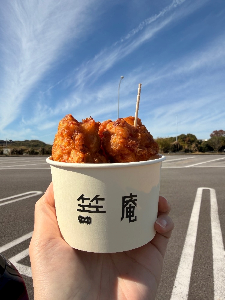 行きにおにぎりと唐揚げ食べたら