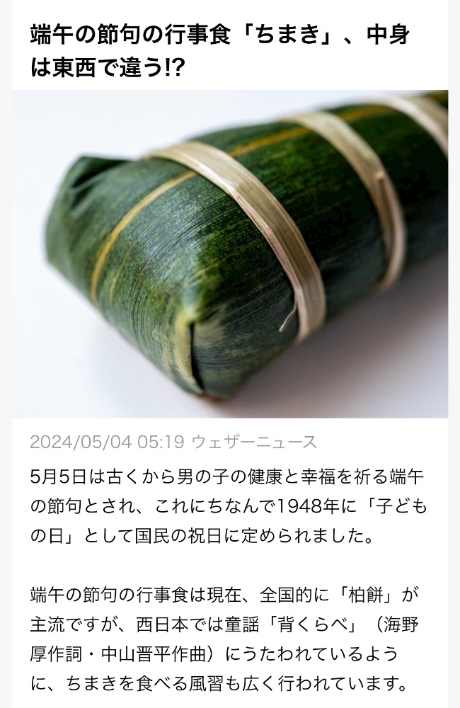 むしろ、和菓子の「ちまき」が東日本では知られていないことは驚きでした。