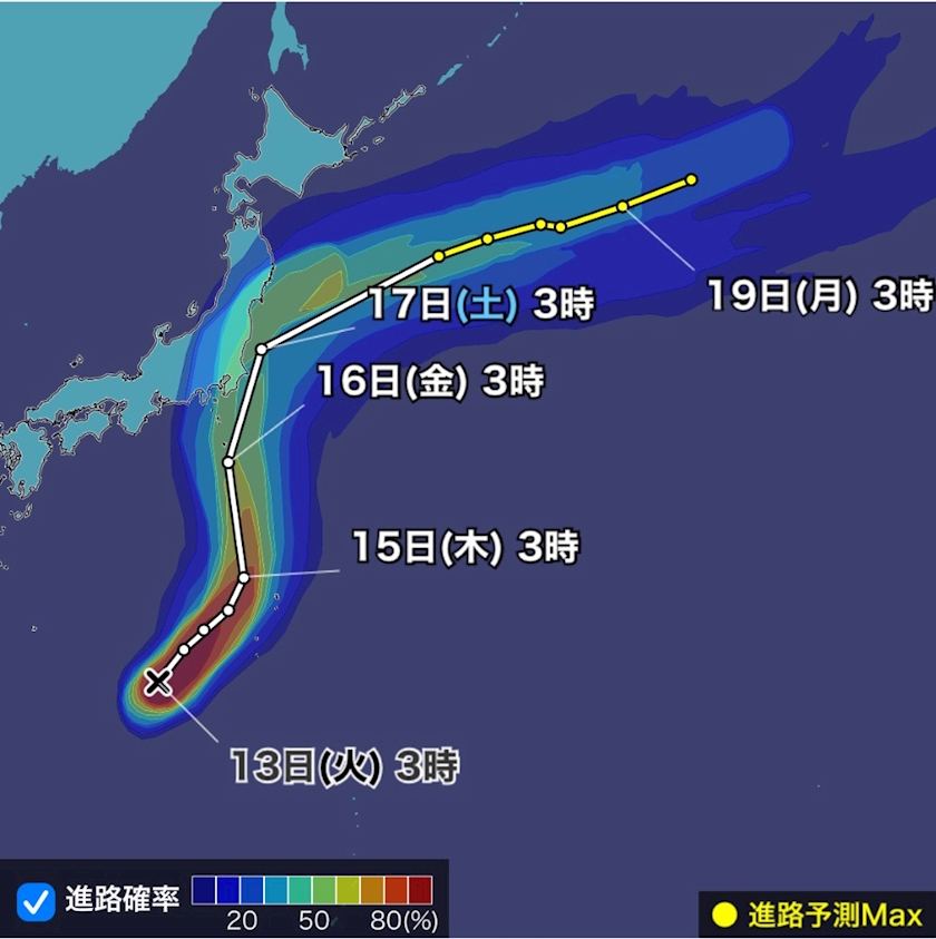 本州に接近する予想