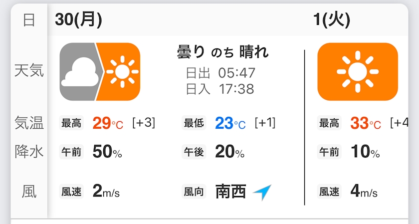 30日(月) 休み