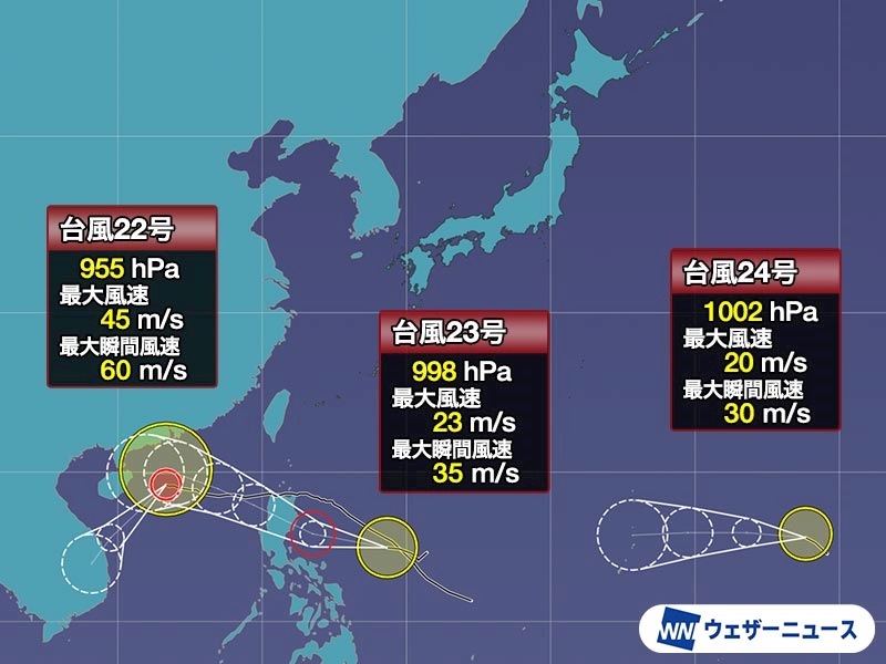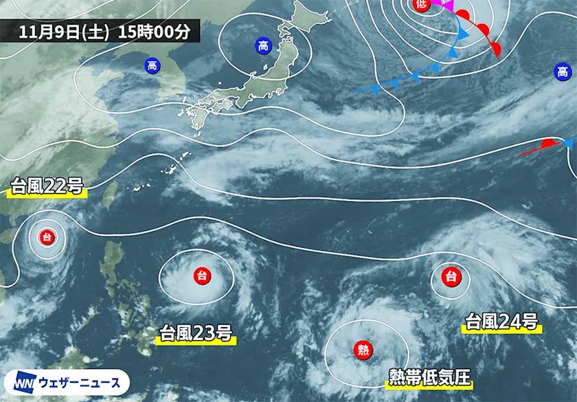 合計3つの台風が西進