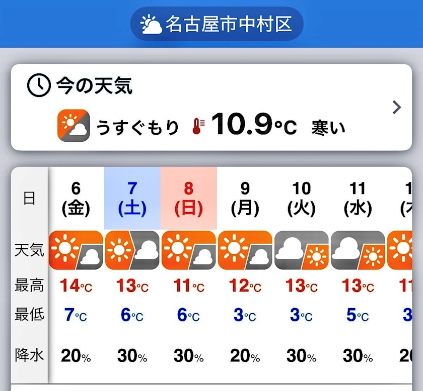 明後日7日(土)は