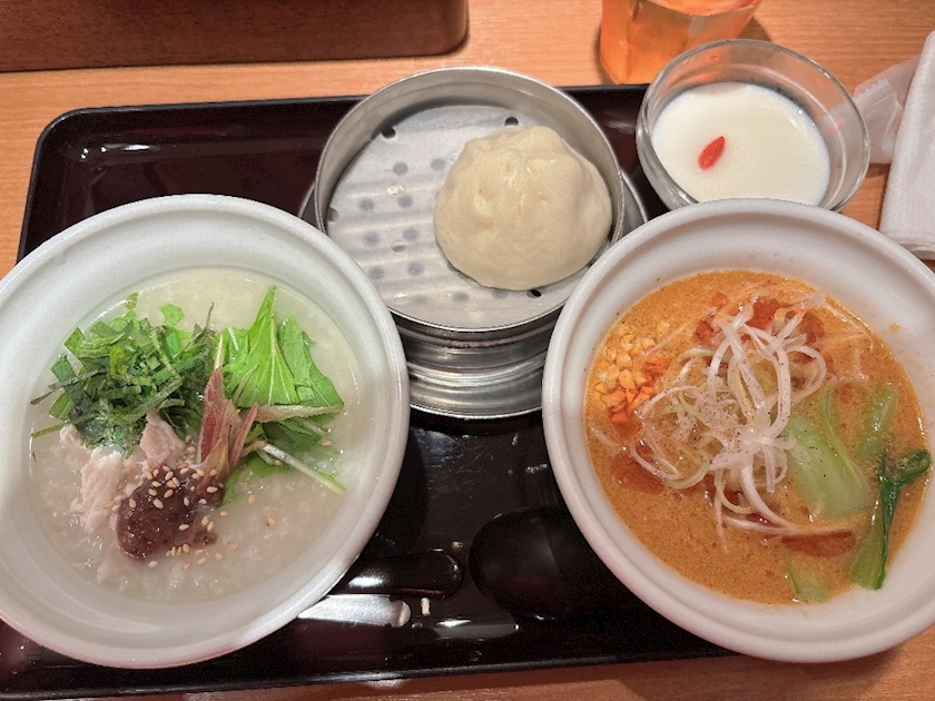 お粥屋さんでご飯食べて