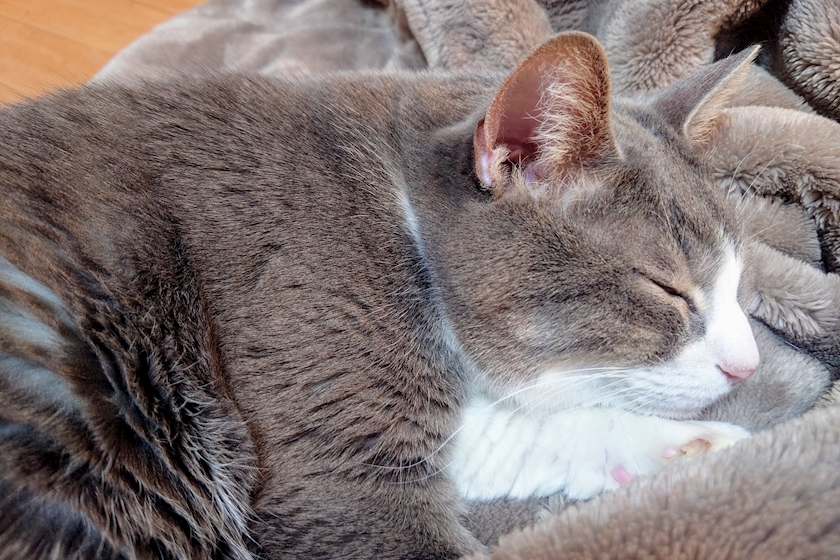 毛布の色と同化してるw
