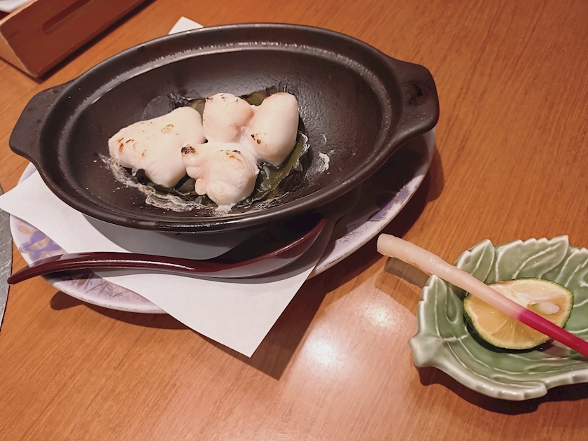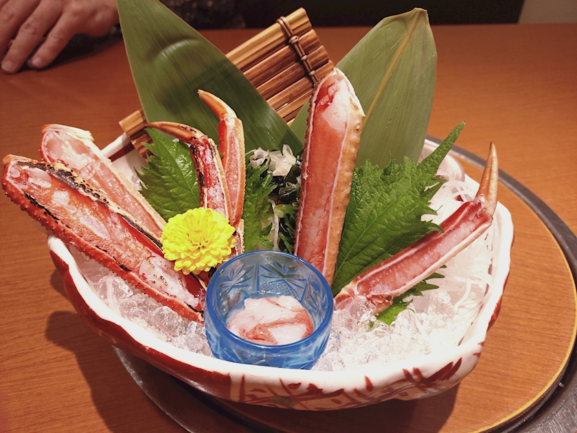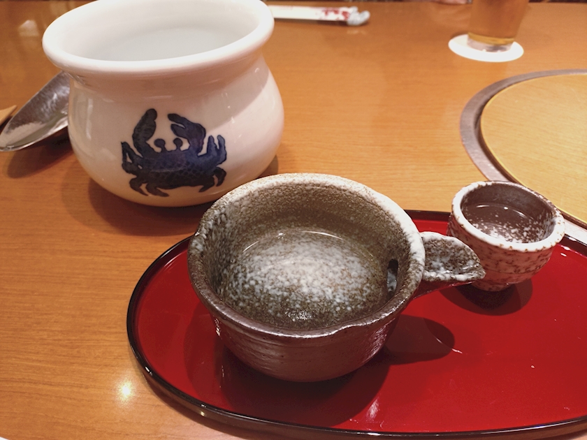 日本酒&蟹身とカニ味噌の甲羅焼から始まり、カニ刺、カニステーキ、天ぷら、フグの白子まで😍