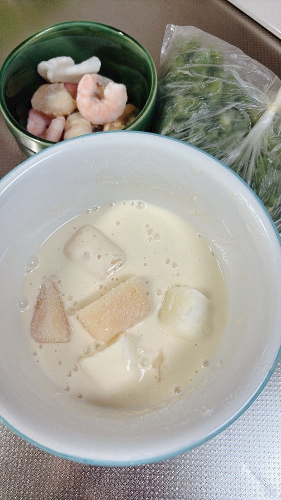 凍らせた🧊海老だしと、