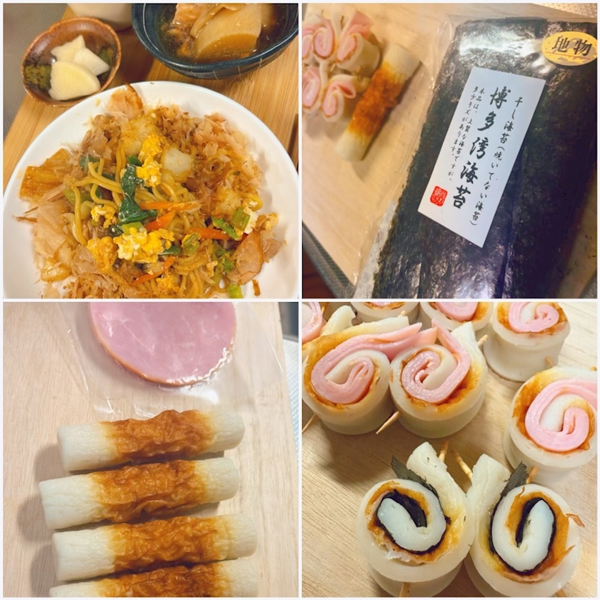 ちくわに、ハムと海苔を
