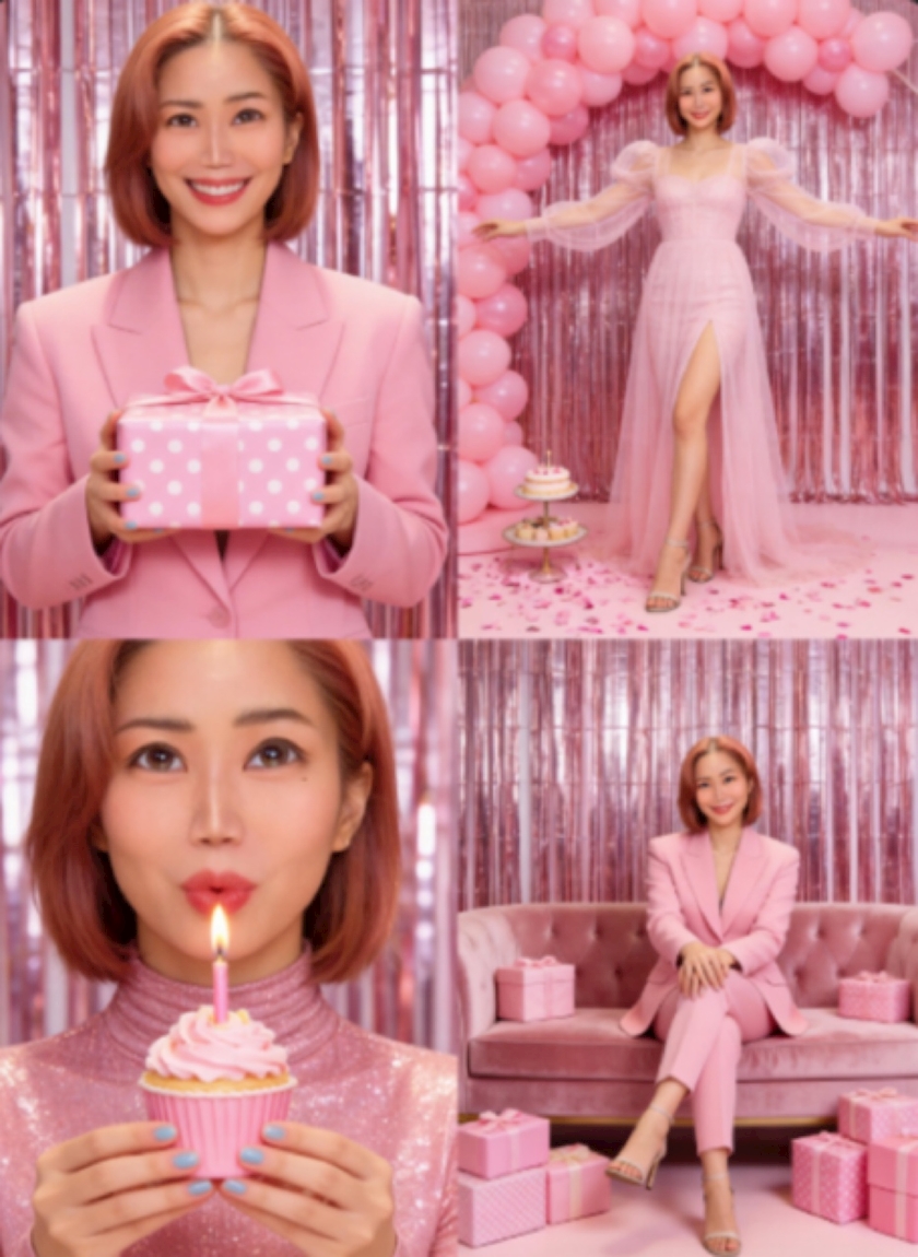 全身、ピンクマンですね。