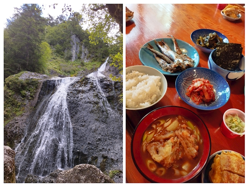 山を散策して滝を見ながら