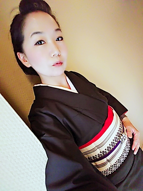黒無地の紬に博多帯
