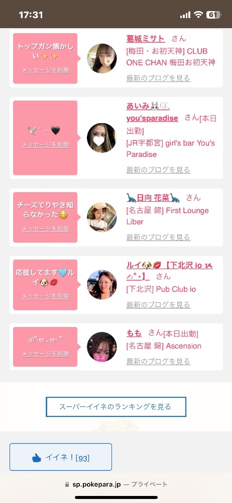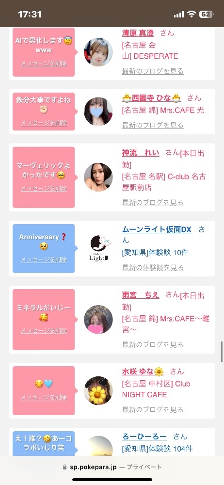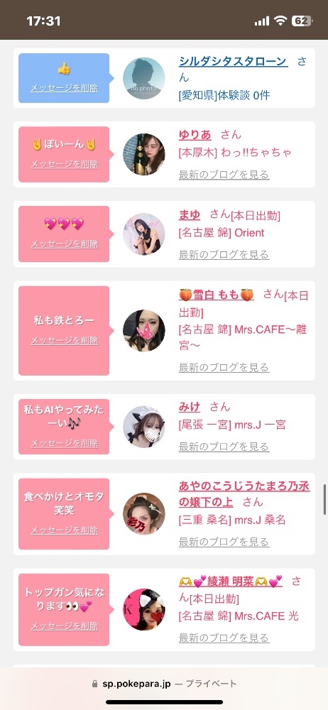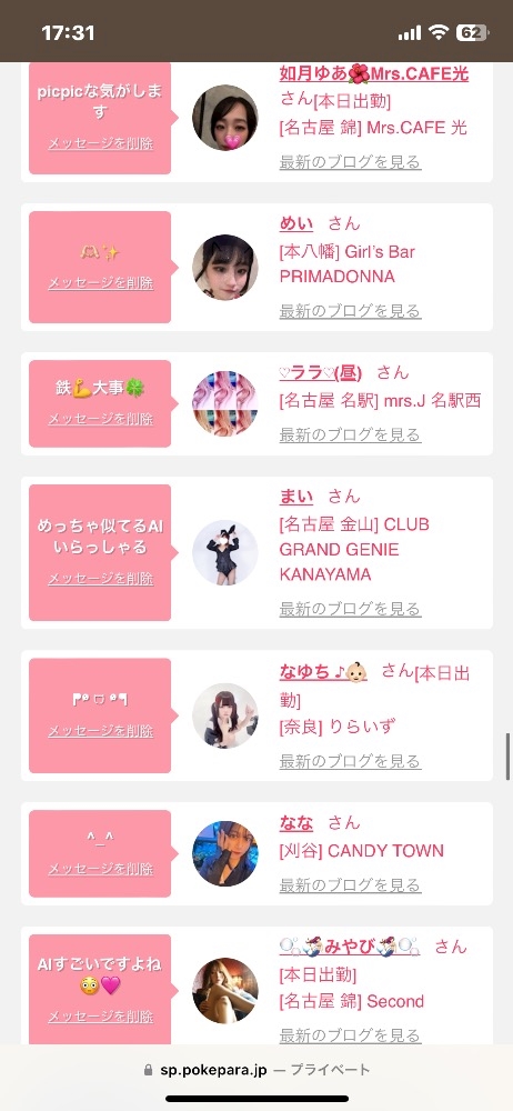 出勤情報など女の子たちの