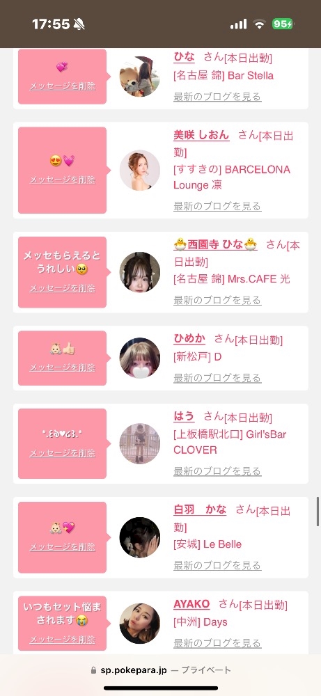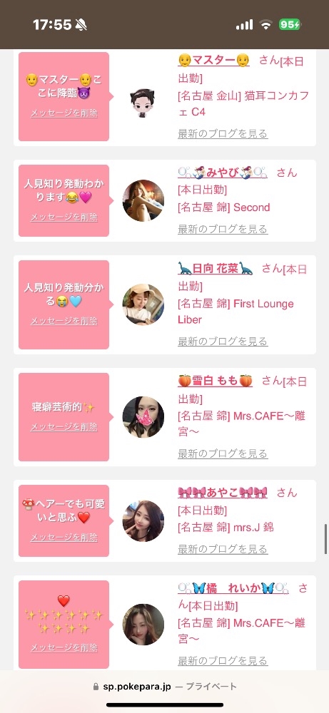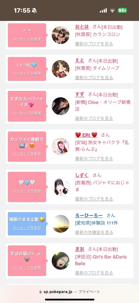 本日の出勤の女の子情報