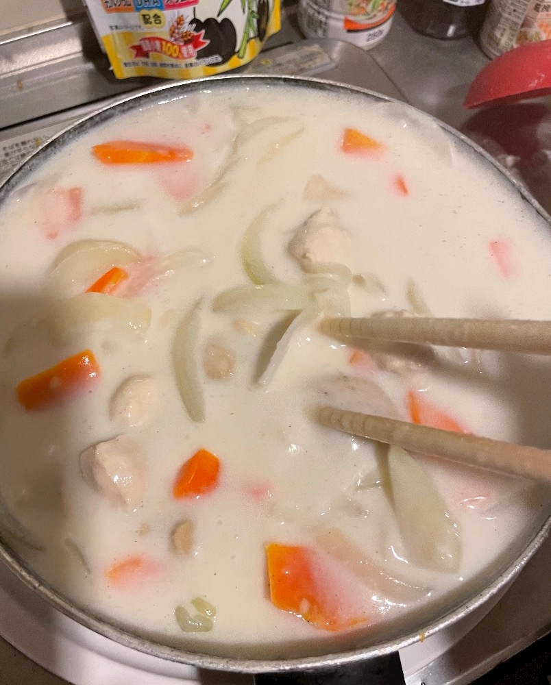 そんなことより作りすぎて一週間くらいシチューになりそうで震える、冷凍しよ😇